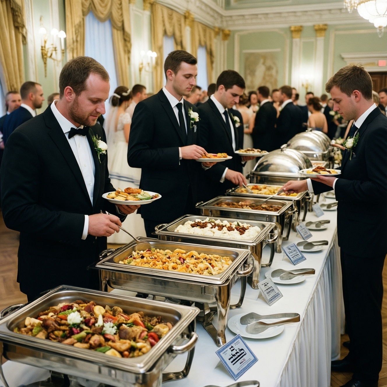 Разделите столы, щипцы/ложки, стойки для напитков, мусорные зоны. Отдельно решите, кто отвечает за контроль на площадке: ваш координатор, персонал кейтеринга, машгиах (если нужен).