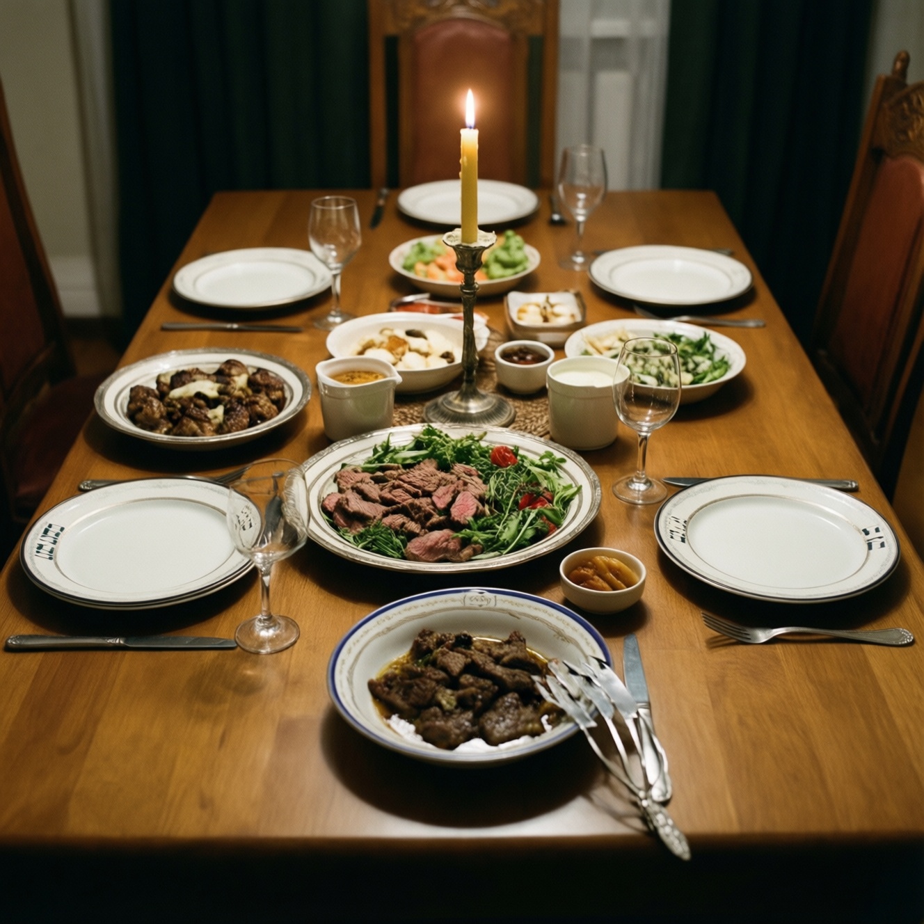 • Оптимальная стратегия без стресса: один белок (мясо или рыба), один горячий гарнир, 2-3 холодные закуски, хала/хлеб, десерт без сложных ингредиентов.